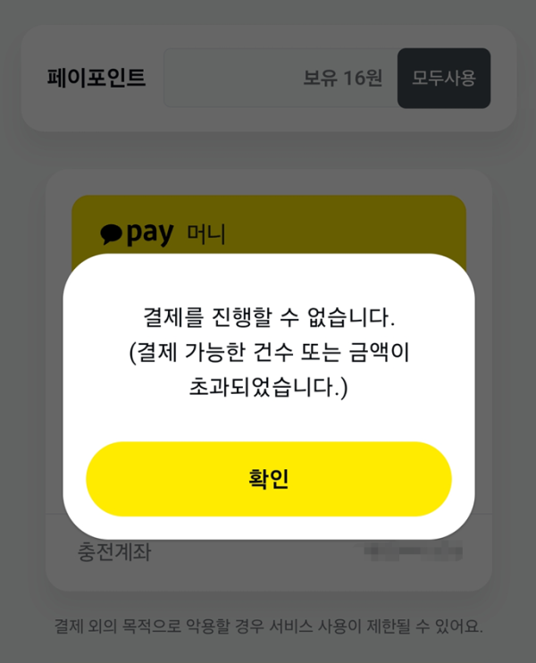카카오페이 / 카카오톡 QR코드 스캔 금액 초과 안내시 해결방법
